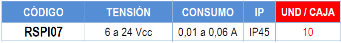 APLICACIONES: en la marcha atrás de vehículos ligeros tipo carretillas elevadoras, en estanterías paletizadas automáticas, en montacargas,…